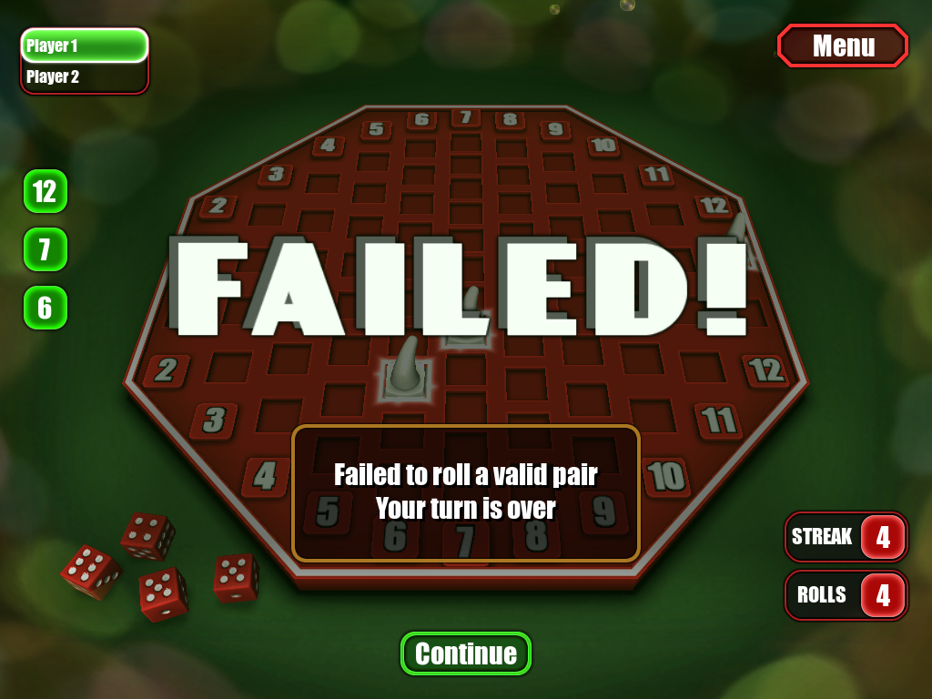 キャントストップの場合、4つのダイスを振ります。