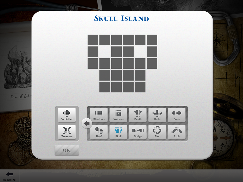 プレーヤー人数(PLAYERS)、難易度(DIFFICULTY)、対面かパス&プレイか(LAYOUT)、島の形(ISLAND)を選択できます。