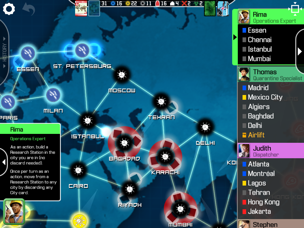 英語がわからなくても、パンデミックをプレイしたことがある方なら、アイコンで大体の意味がわかるのはうれしい仕様です。