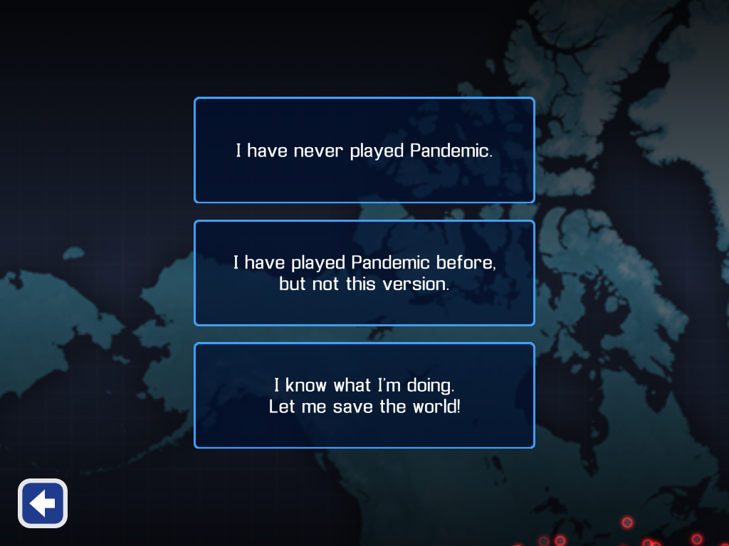 3段階になっていて、初心者向け、リアルなボードゲームのパンデミックをプレイしている方向け、特にチュートリアルがいらない人向けがあります。